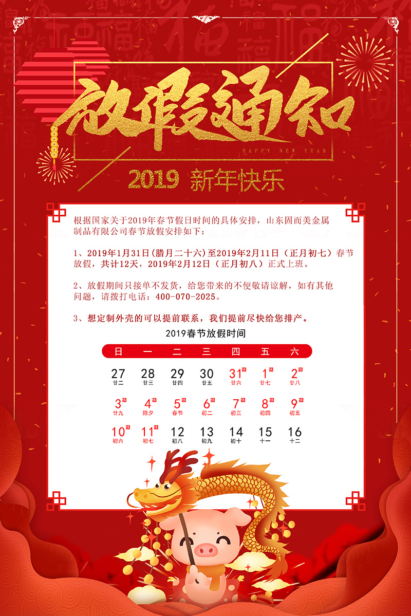 山東固而美,年假放假通知,年前下單都發貨喲~
